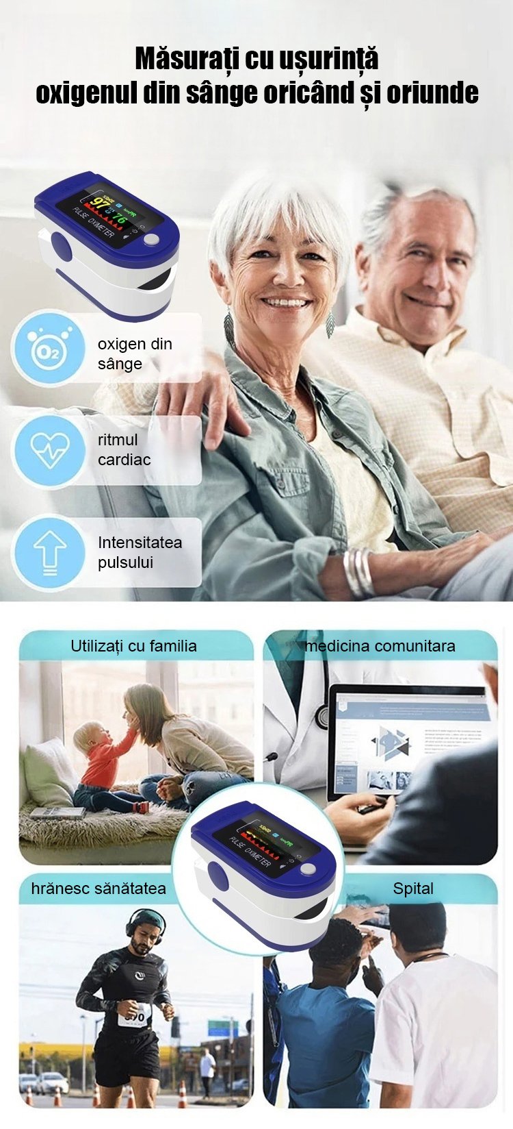 Monitor de uz casnic cu clemă pentru degete