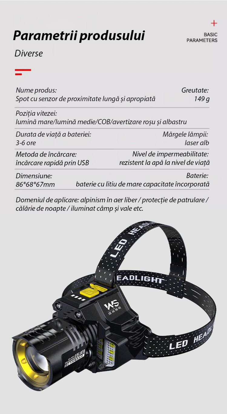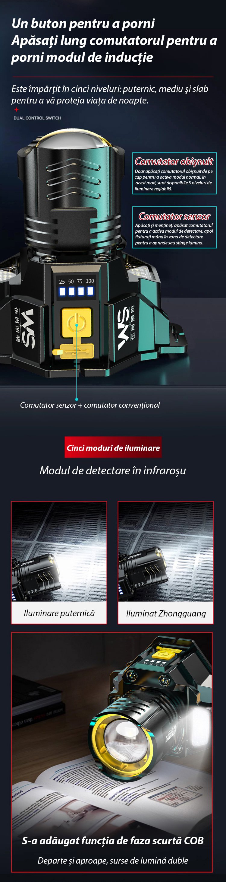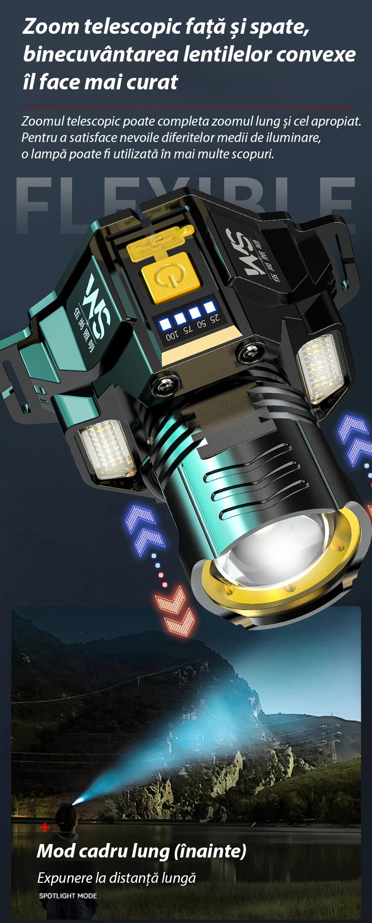 Far german cu senzor de zoom cu sursă de lumină dublă