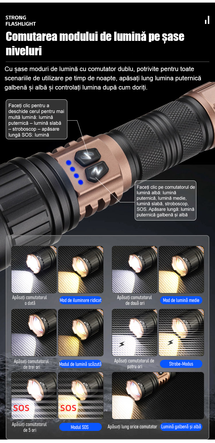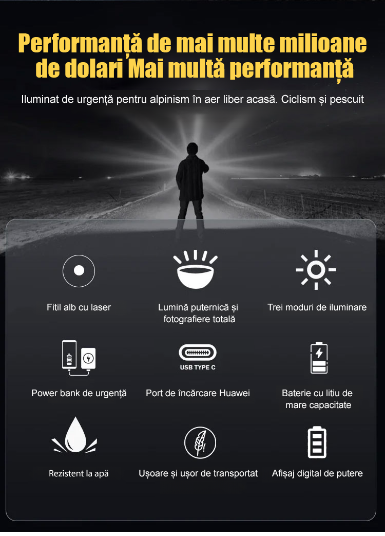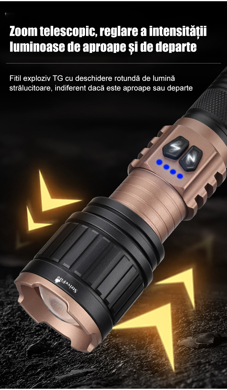 【Sursă dublă de lumină, rază ultra-luminoasă】Lanternă cu focalizare variabilă și laser alb