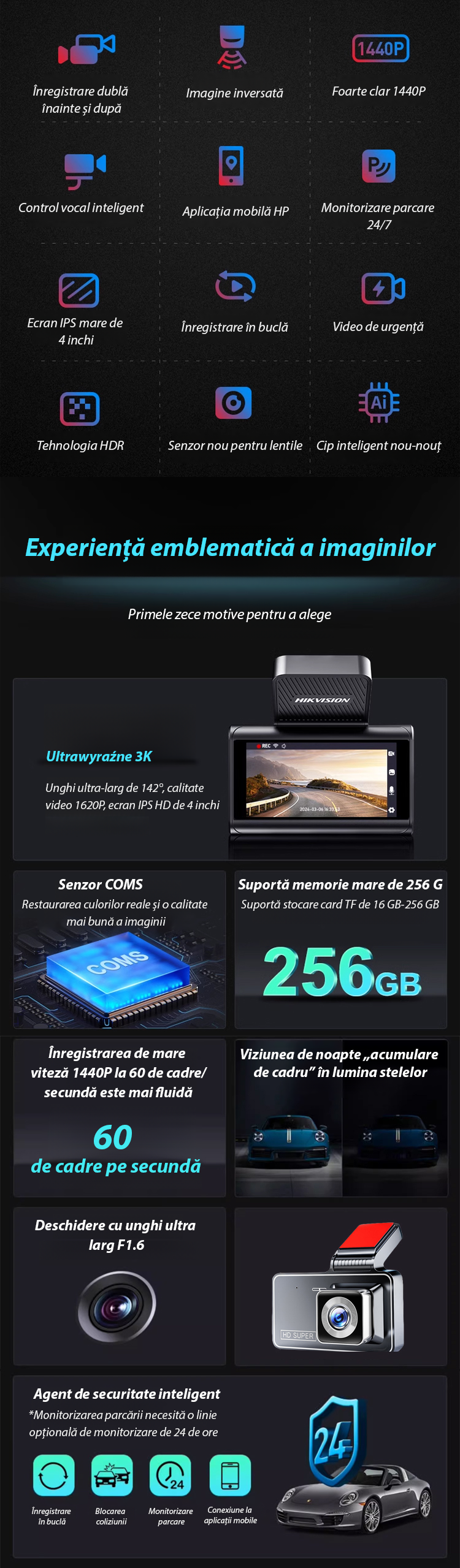 Noua cameră de bord ultra HD cu înregistrare dublă față și spate